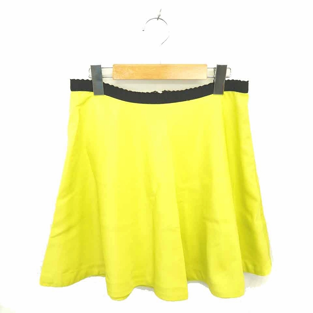 【中古】フォーエバー21 FOREVER21 スカート フレア ミニ 薄手 無地 シンプル バックジップ S 黄緑 ライトグリーン