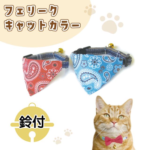 フェリーク キャットカラー デニムバンダナ 猫 首輪 猫用 カラー 安全 セーフティバックル かわいい おしゃれ かっこいい