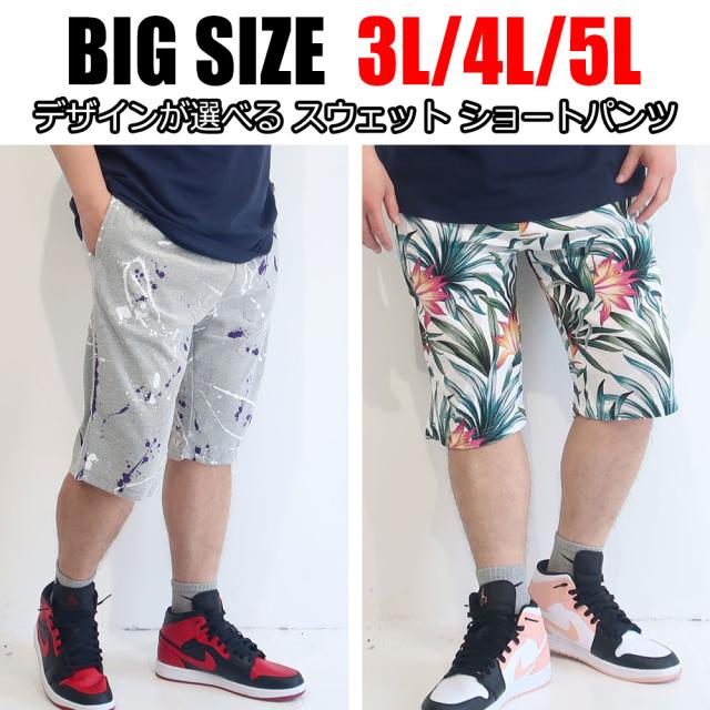 【送料無料】メンズ 大きいサイズ ハーフパンツ パンツ スウェット 3L 4L 5L XXL XXXL ボタニカル サーフ サマー プリント ウエストリブ ゴム ハーフパンツ ショーツ イージーパンツ 短パン 花柄 大人 30代 40代 50代 カジュアル 部屋着