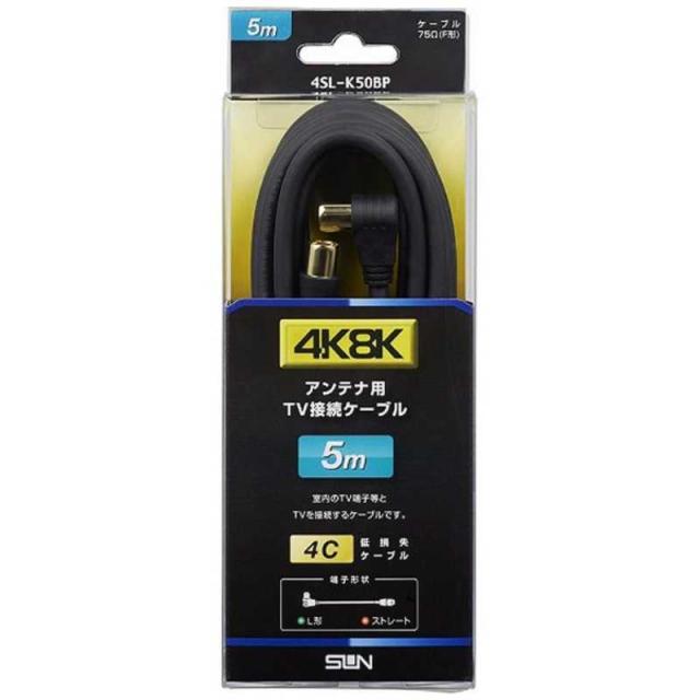 サン電子 4K8K対応 テレビ用アンテナケーブル 5m ブラック L型プラグ-ストレートプラグ 4SL-K50BP