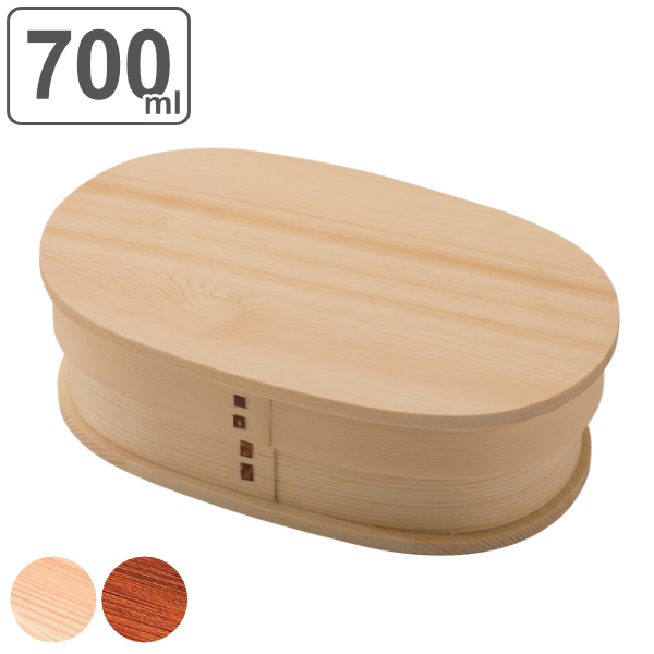 弁当箱 曲げわっぱ 1段 700ml 小判型 ( 木製 ランチボックス 弁当箱 一段 わっぱ 大人 弁当 お弁当 仕切り付き ゴムバンド付き )