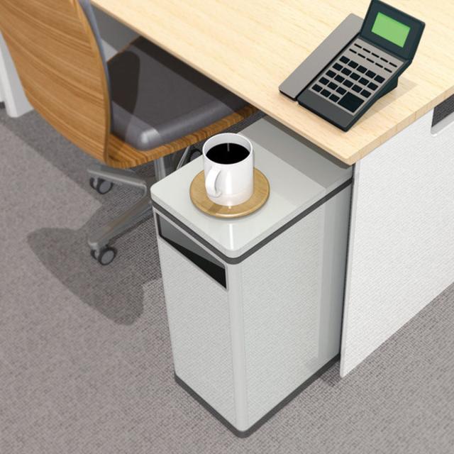 デスク下にコンパクトに収まる屑入れです。狭いオフィスでも邪魔にならず省スペースで設置が可能なので、休憩スペースや会議室、来客用のテーブル下や喫煙スペースなど、ちょっとしたゴミが出る場所にも省スペースで設置することができます。