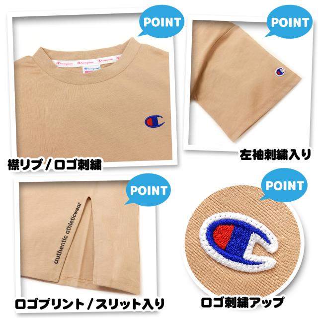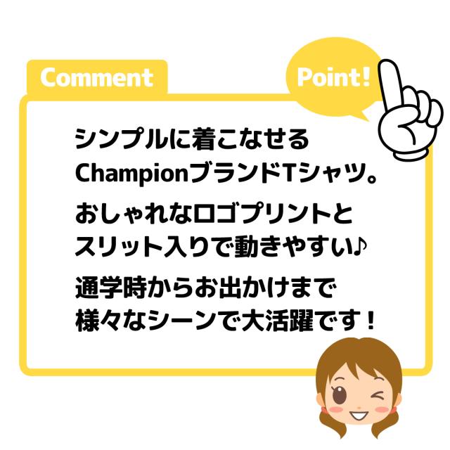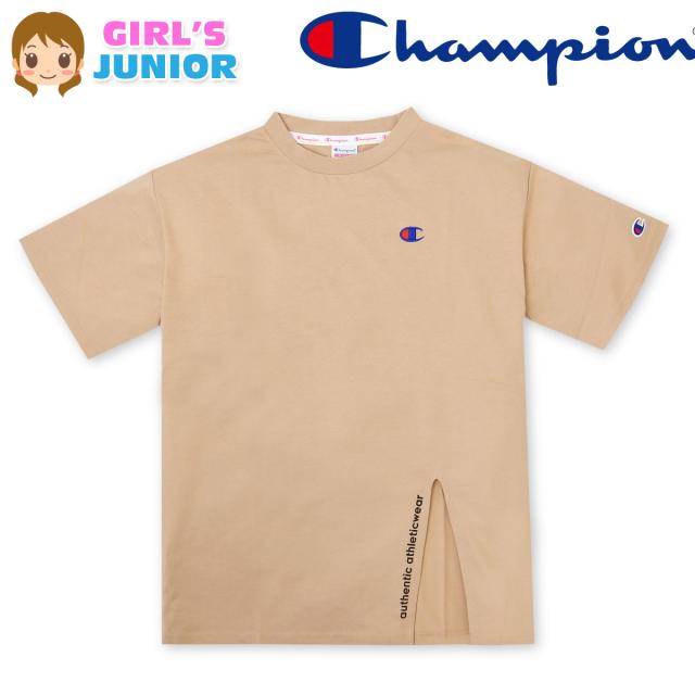 【送料無料】女児 ジュニア Champion/チャンピオン 半袖 Tシャツ 綿混 ロゴプリント ロゴ刺繍 裾スリット入り 子供服 女の子 140cm 150cm 160cm td-0169b【メール便対応】