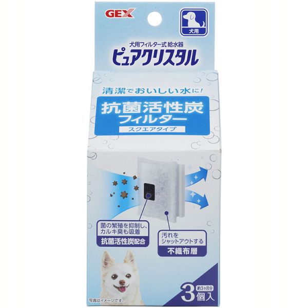 ピュアクリスタル 抗菌活性炭フィルタースクエアタイプ 犬用 3個 給水器 ジェックス ピュアクリスタル 水飲み GEX 給水 フィルター式 ペット用品 犬