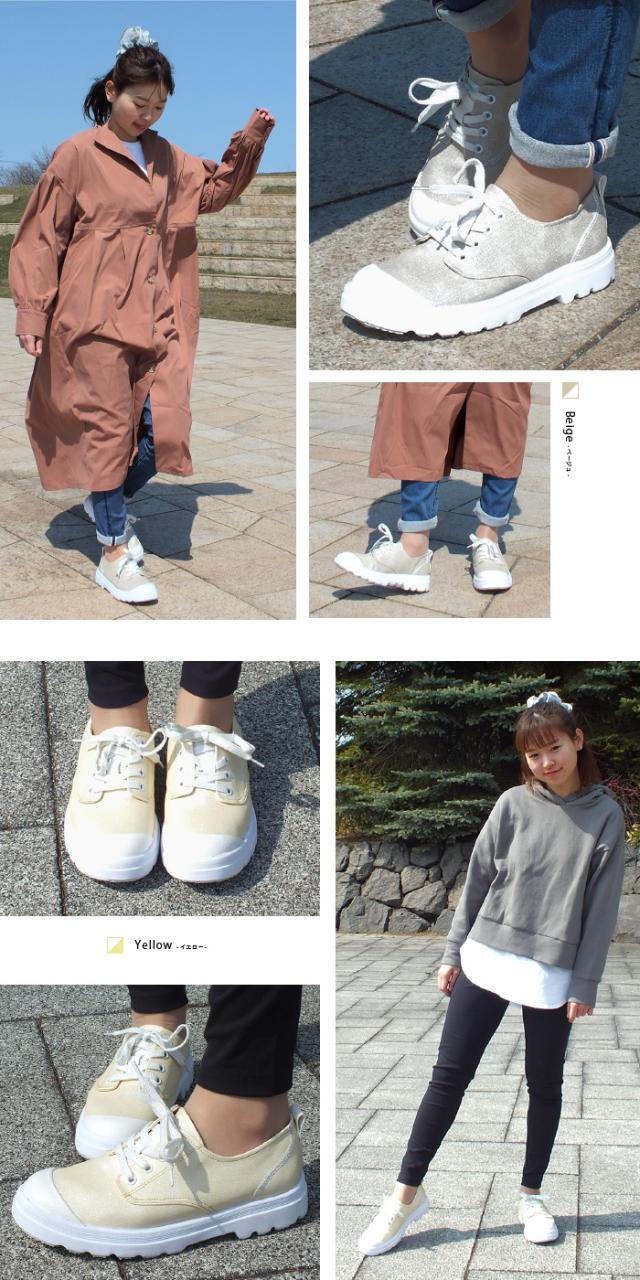 上品に光るラメ加工がアクセント!厚底レースアップスニーカー