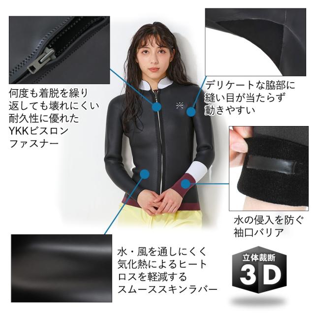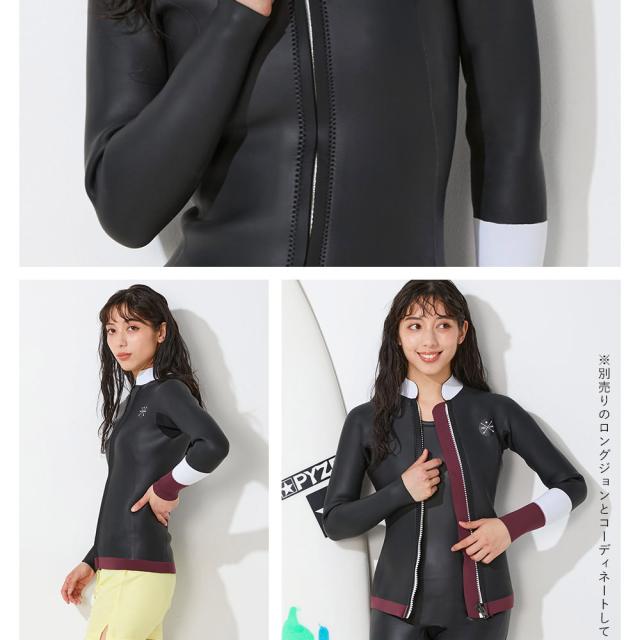FELLOW ウェットスーツ タッパー レディース フロントジップ 3mm スキン ラバー ジャケット サーフィン 日本規格