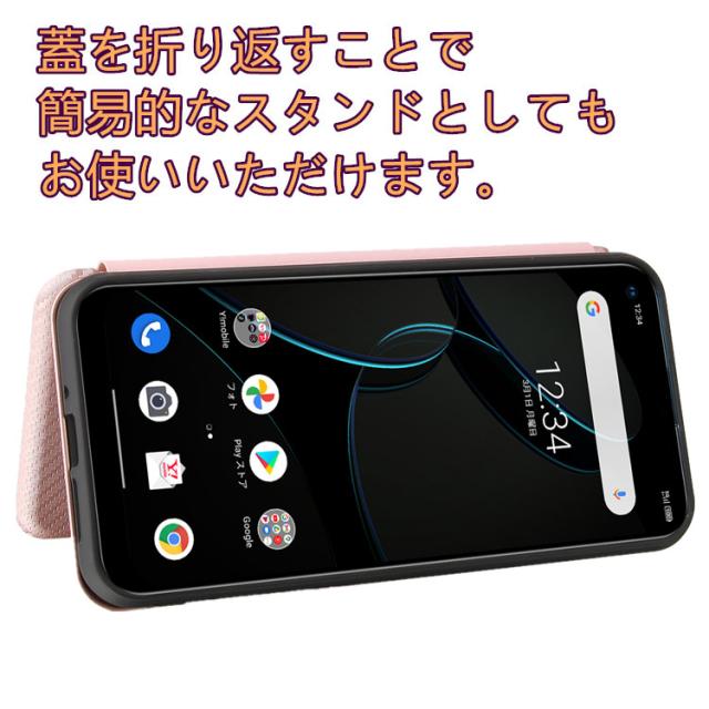 ワイモバイルZTE Libero 5G 手帳型 薄型 カーボンファイバー 炭素繊維カバー TPU 保護バンパー 財布型 マグネット式 カード収納 落下防止 ホルダ 横開き リンクストラップ付き