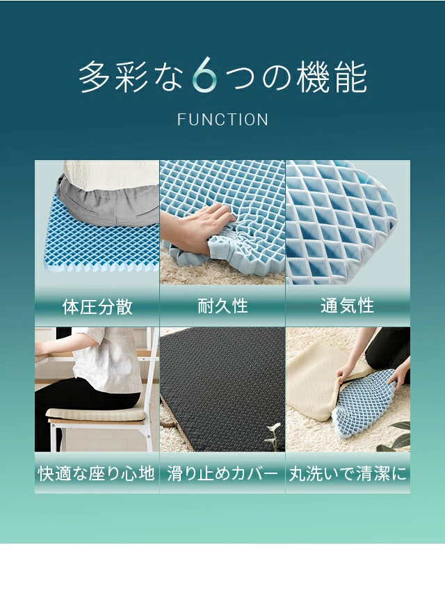 長い時間座っていても疲れにくい座面クッション。