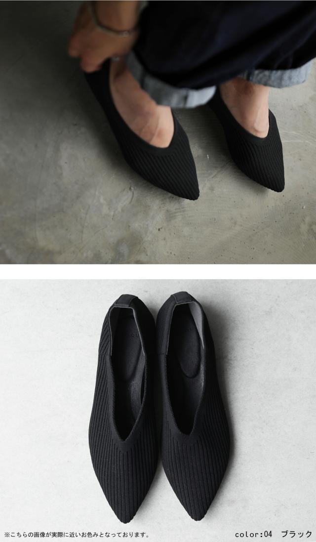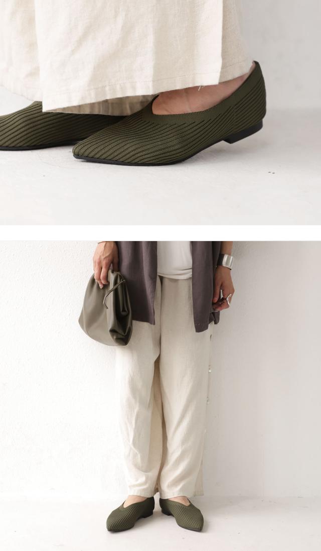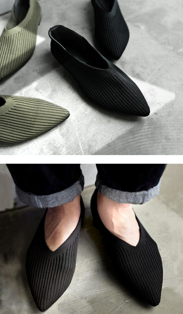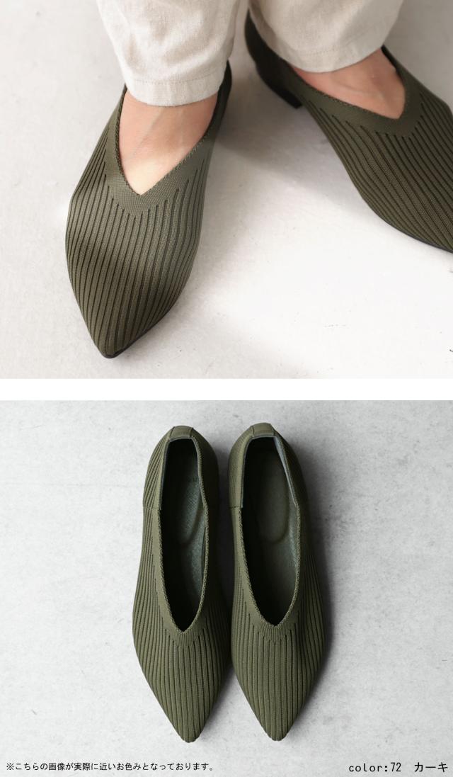 ap-00009 靴 パンプス 痛くない 歩きやすい ローヒール ニット レディース ぺたんこ シューズ ポインテッドトゥ アーモンドトゥ フラット ブラック カーキ くつ クツ