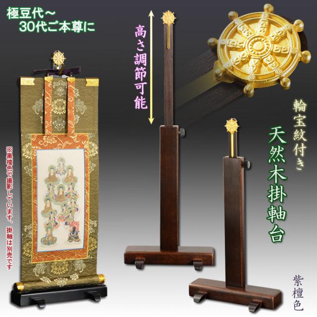 国産仏具【一般普及タイプ:輪宝紋入り・天然木掛軸台 紫檀色 豆サイズ】仏壇 仏具 仏壇用掛軸 本尊・お掛軸 八宗対応