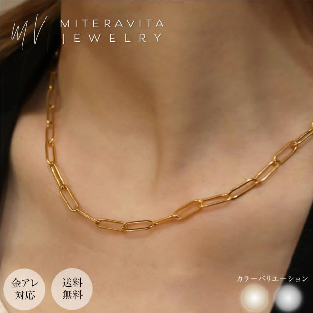 金属アレルギー対応 ネックレス サージカルステンレス ネックレス 【N47】クリップチェーン ネックレス ロング 金アレ ニッケルフリー ゴールドネックレス シルバー 14Kコーティング
