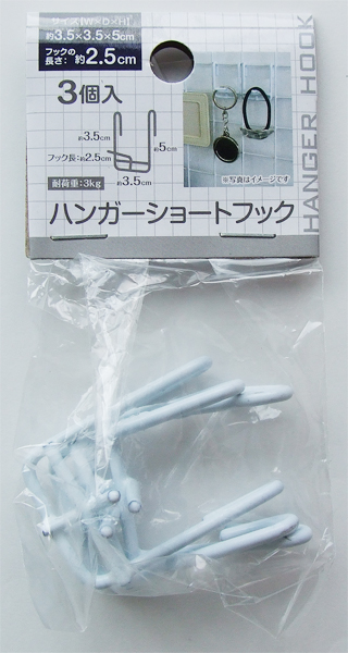 ●品名・ハンガー2.5cmショートフック3個入
