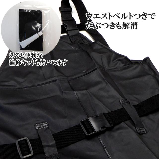 ナイロンウェーダーより重くはなりますが、丈夫で補修のしやすいPVC製です