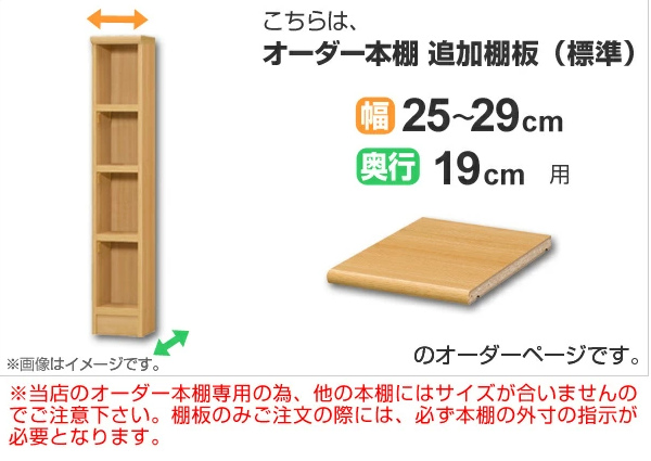 専用追加棚板 オーダー本棚 奥行19cm 本体幅25-29cm用 ( オーダーメイド セミオーダー 奥行19cm用追加棚 幅25-29cm 本棚 収納棚 )