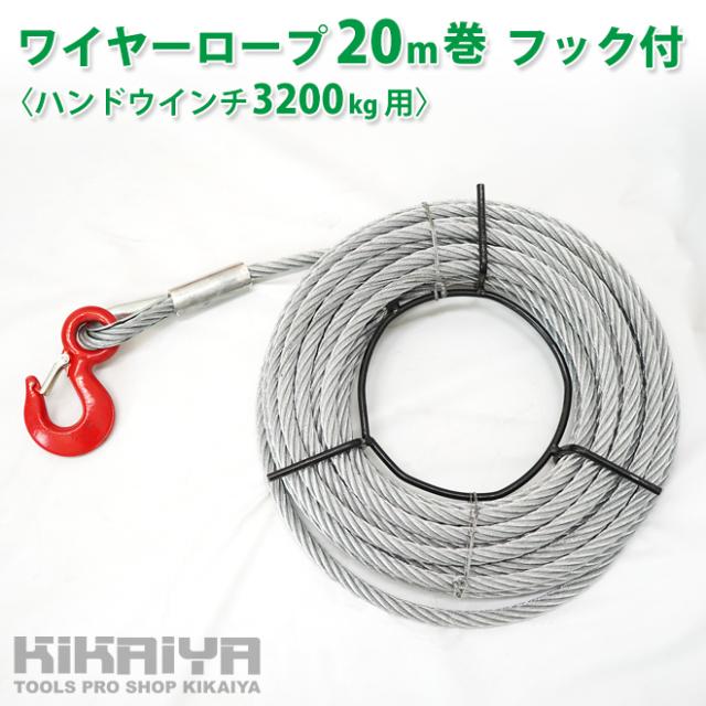 ワイヤーロープ 20m巻 フック付 ハンドウインチ 3200Kg用 ウィンチ 万能携帯ウインチ KIKAIYA