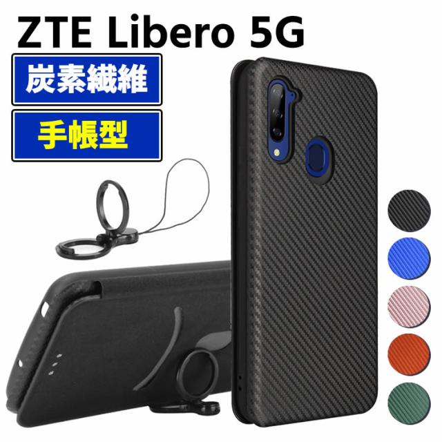 ワイモバイルZTE Libero 5G 手帳型 薄型 カーボンファイバー 炭素繊維カバー TPU 保護バンパー 財布型 マグネット式 カード収納 落下防止 ホルダ 横開き リベロ ファイブジー