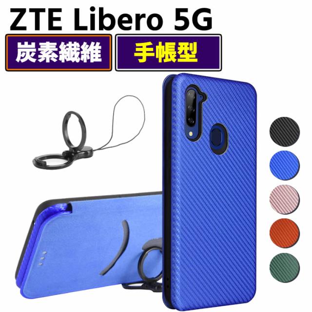 ワイモバイルZTE Libero 5G 手帳型 薄型 カーボンファイバー 炭素繊維カバー TPU 保護バンパー 財布型 マグネット式 カード収納 落下防止 ホルダ 横開き リベロ ファイブジー