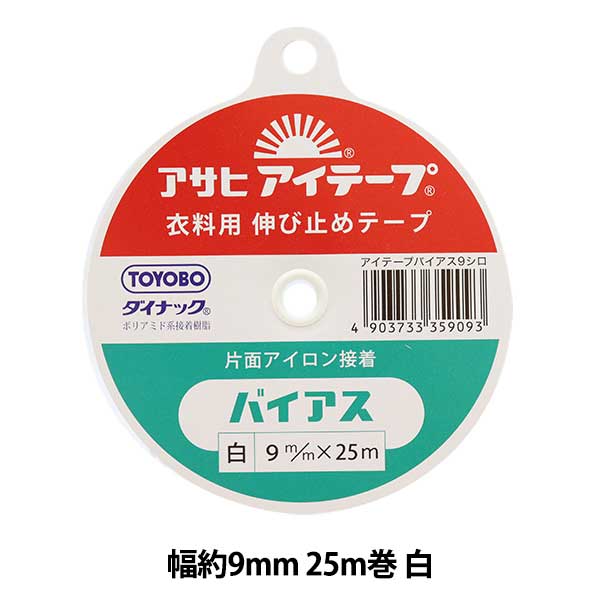 接着テープ 『アイテープ 伸び止めテープ 片面アイロン接着 バイアス 白 幅約9mm 25m巻』