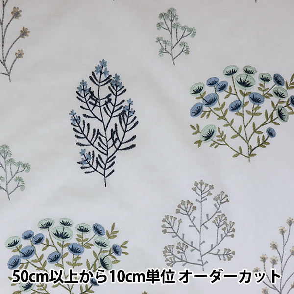 [刺しゅう ししゅう フロリス 花柄 植物 水色 グレー 灰色 Floris Mineral Denim 布]