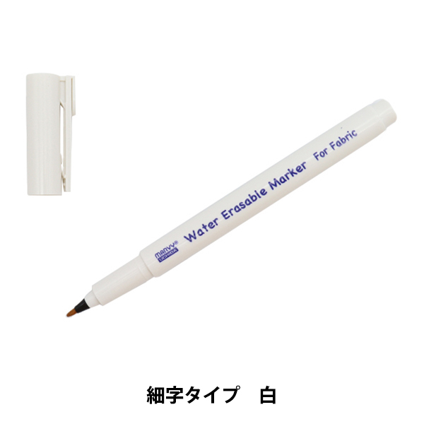 細字タイプで濃布用のホワイト。水にぬらすと消えるチャコペンタイプ。