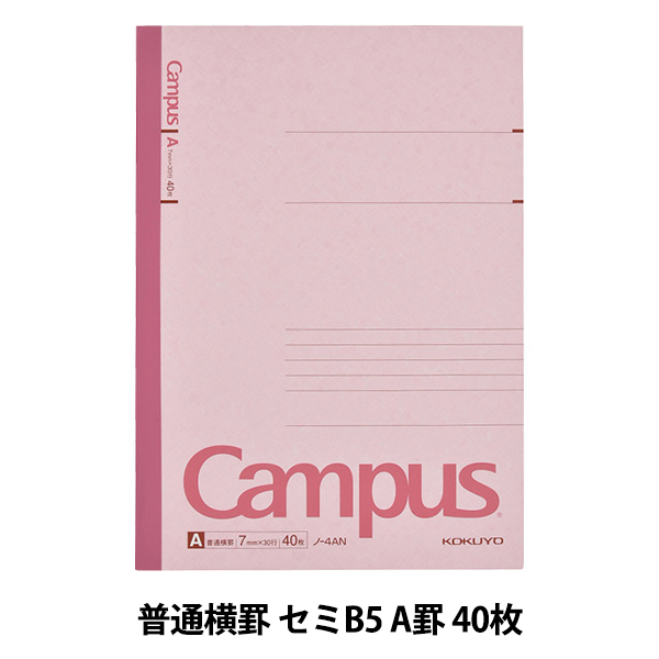 ノート 『コクヨ キャンパスノート 普通横罫 6号 セミB5 A罫 40枚 ノ-4AN』 KOKUYO コクヨ