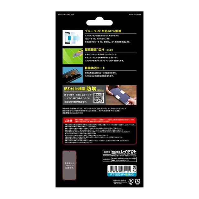 Galaxy S21 液晶画面保護ガラスフィルム ブルーライトカット 防埃 高透明 硬度10H 防汚コート 清潔 ソーダガラス イングレム