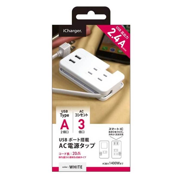 スマートフォン タブレット AC電源タップ ホワイト USBポート搭載 コンセント充電 TypeーA スマートフォン タブレット シンプル PGA