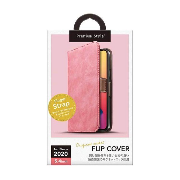 iPhone 12mini ケース ダスティピンク 手帳型カバー PUレザー 高級感 フィンガーストラップ カードポケット シンプル おしゃれ PGA
