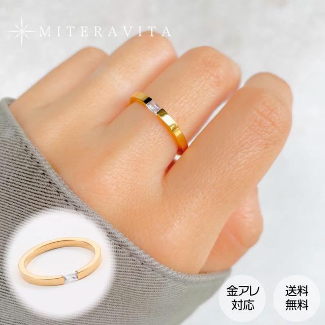 サージカルステンレス 指輪 リング 18Kコーティング インレイド ジルコニア リング 金属アレルギー対応 SUS316L ゴールド 【R45】
