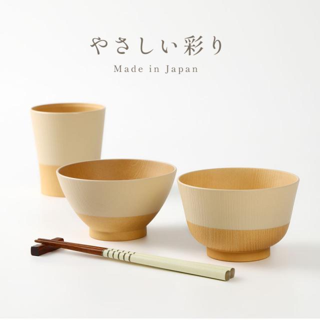 やわらかい日本伝統色を選りすぐった「やさしい彩り」シリーズ。樹脂製ながら、本物の天然木のような木目調の質感が魅力。シンプルながらも温かみのある「くすみカラー」は北欧食器との相性抜群。食洗機や電子レンジにも対応。