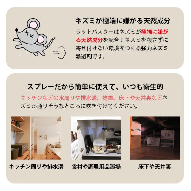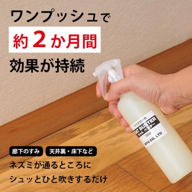 ラットバスター プッシュスプレータイプ 250ml ネズミ駆除 効果抜群 追い出す方法 ネズミ退治 撃退 ネズミ忌避スプレー 屋外 屋内 最強 日本製 害獣駆除 人に優しい ねずみよけ ネズミの侵入防止 死骸を出さない 動物駆除