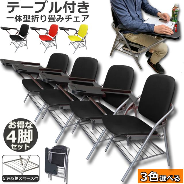 折りたたみ椅子 テーブル 付き PU製 スポンジクッション付き 折りたたみチェア 4脚セット完成品 人工皮革 背付き 組み立て不要 メモ台付き 軽量 コンパクト 収納 会議 収納 パイプ椅子 パイプイス ミーティングチェア 椅子 一体型 チェア