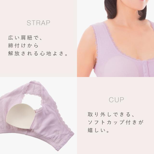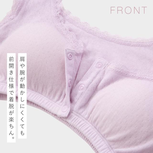 ブラジャー 綿100%,ブラジャー ノンワイヤー,ブラジャー 前開き,ブラジャー,ノンワイヤー,ノンワイヤーブラ,ハーフトップブラ,ナイトブラ,ソフトブラ,リラックスブラ,授乳ブラ,前開き,フロントボタン,前ボタン,授乳,締め付けない,しめつけない,苦しくない,痛くない,締め付け解放,締付け解放,腕が回らない,腕が上がらない,手が届かない,リラックス,レース,着脱簡単,カップ,取り外し可能,薄手,薄め,さらさら,サラサラ,春,夏,春夏,秋,冬,秋冬,オールシーズン,涼しい,快適,ラベンダー,紫,パープル,ガーゼ,綿100%,コットン100%,綿,コットン,100,肌に優しい,敏感肌,保温,2重ガーゼ,二重ガーゼ,ダブルガーゼ,ふんわり,大人,レディース,女性,シニア,高齢者,お年寄り,ミセス,介護,在宅介護,入院,30代,40代,50代,60代,70代,M,L,LL,大きいサイズ,ゆったり,大きめ,
