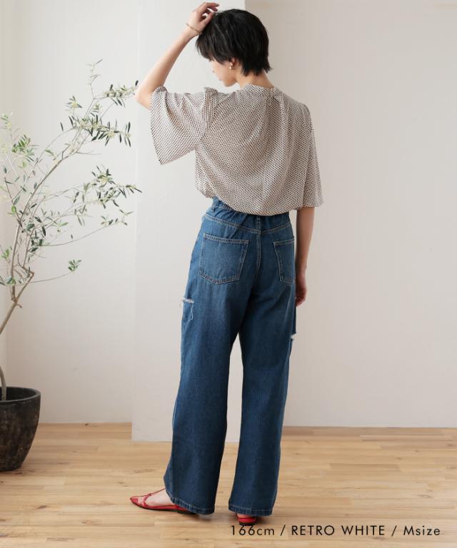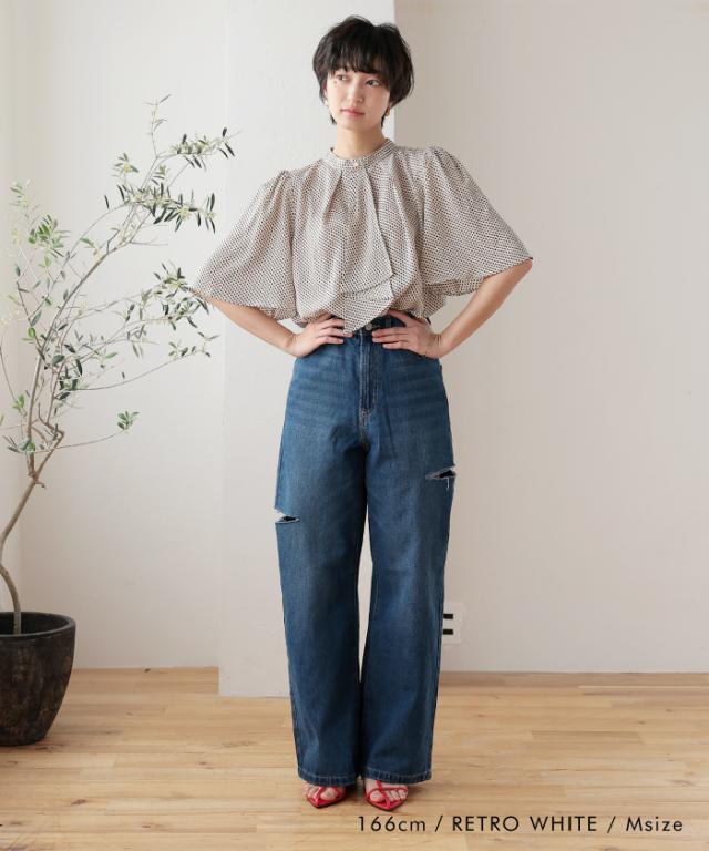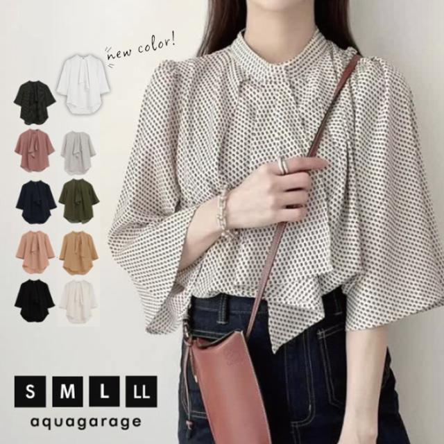 ≪ゆうメール便配送20・代引不可≫ スカーフタイフレア袖ブラウス レディース 春 夏 M L 半袖 七分袖 八分袖 アクアガレージ aquagarage