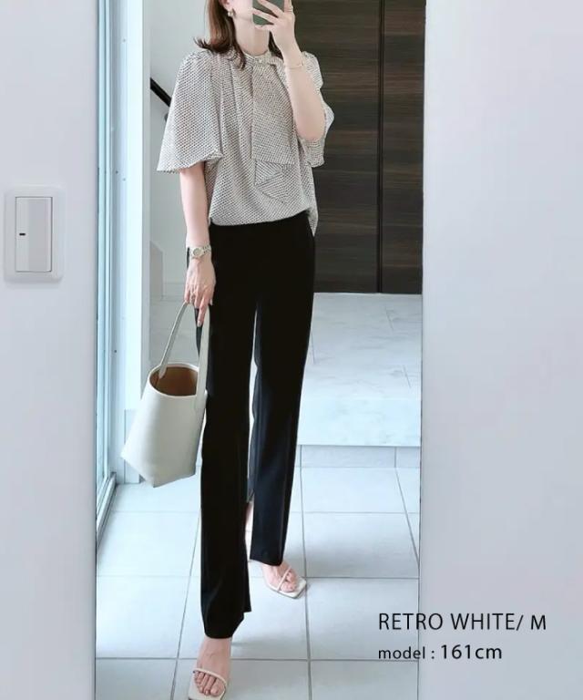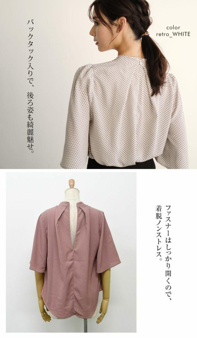 - 職場できちんと感を出したい時に着用するブラウスを探していて、こちらの「レトロ柄ホワイト」を購入しました。 スカーフタイもフレア袖の長さも柄もバックタックも気に入り、後ろファスナーで着脱しやすく、ボト...