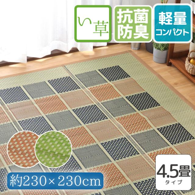 い草 ラグ カーペット 4.5畳 約230×230cm 防カビ 防ダニ 抗菌 防臭 チェック柄 ベージュ グリーン コンパクト 天然素材 ごろ寝 イ草 ござ 上敷き 夏用 マット おしゃれ センターラグ 在宅 勤務 松山