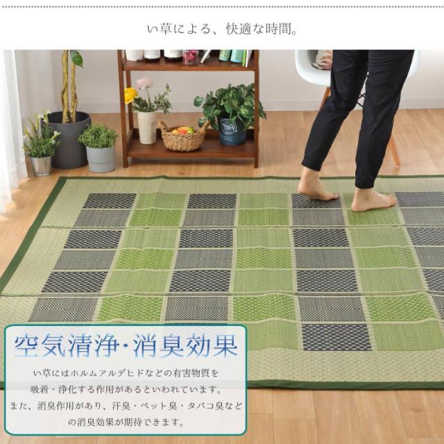 い草 ラグ カーペット 6畳 約230×330cm 防カビ 防ダニ 抗菌 防臭 チェック柄 ベージュ グリーン コンパクト 天然素材 ごろ寝 イ草 ござ 上敷き 夏用 マット おしゃれ センターラグ 在宅 勤務 松山