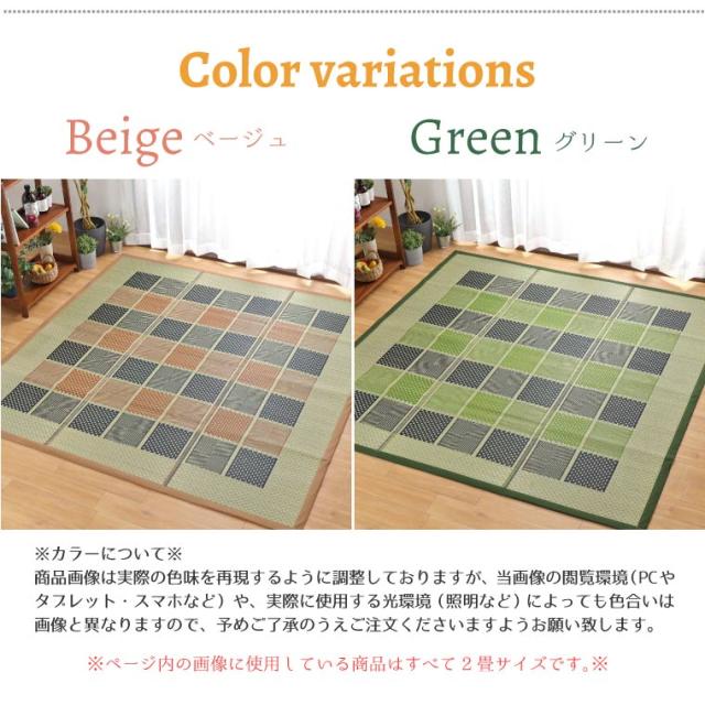 | ※1 お手入れの際は空拭きをしてください。(水気の含んだ布で拭くとカビが繁殖したりい草の繊維を弱くするきっかけとなります。) ※2 水などこぼしたときは、乾いた布で軽く叩いて水気を吸い取ることを繰り返し行なってください。 ※3 商品がお手元に届きましたら、すぐに開けて商品の状態(商品間違いや不具合)をご確認下さい。 到着後3日を過ぎてのご連絡には返品・交換などの対応ができなくなります。ご注意下さい。 ※4 商品到着後、箱や袋から出さずにおいたり、通気のない場所や湿気のある場所でのご使用はカビの原因となりますのでお避け下さい。 ※5 天然の素材を使用しているため、素材そのものに色むらがある場合がございます。そのため、同じ商品でも多少色が異なったりする場合がございます。 ※6 当商品は天然素材を使用しており、素材そのものの香りがあります。到着直後はその香りが強い場合がございますが、 ご使用頂くうちにそのにおいは抜けていきます。不良品などとしての返品や交換などの対応は致しかねますので、予めご了承の上、ご注文下さいませ。 ※7 掲載している商品画像は、実際の色味を再現できるよう調整しておりますが、ご覧頂いておりますPCモニタ・携帯端末の画面等の環境や、実際に敷く お部屋の照明等の光加減に左右されます。 ※8 表示のカラー名は商品の色そのものを特定するものではなく、ご注文管理の便宜上の「名前」としてのものです。予めご了承の上ご注文くださいますようお願い致します。 |