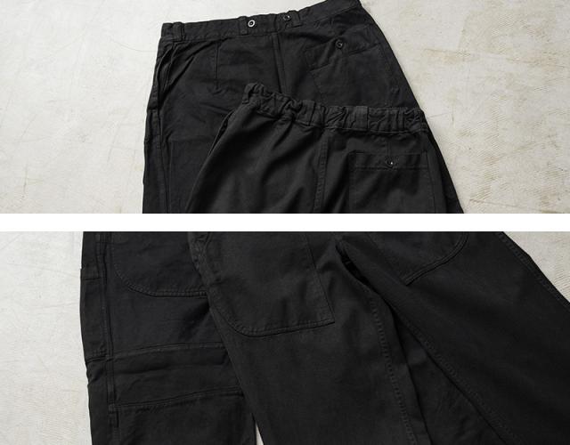 フロントの両サイドにはベイカーパンツの様な大きなポケット、さらに脇部分には貫通式のポケットを配置。