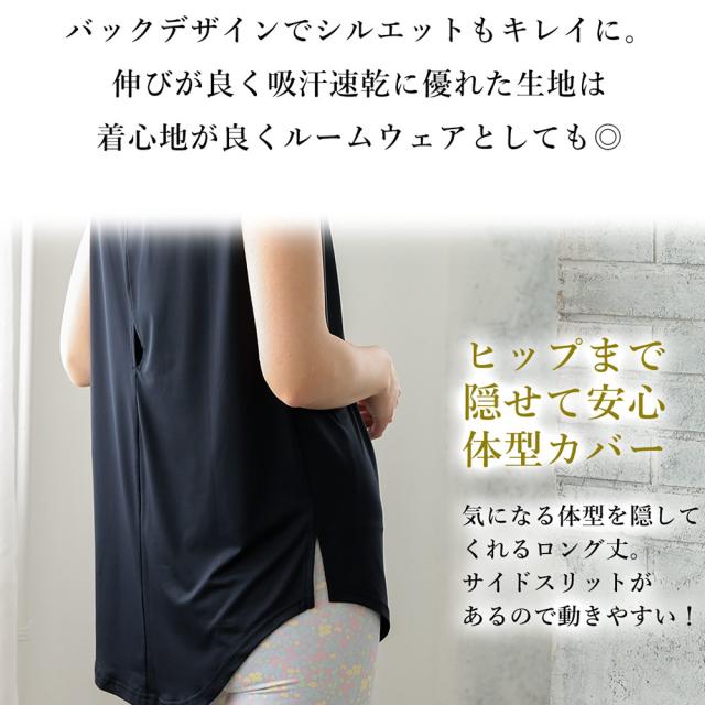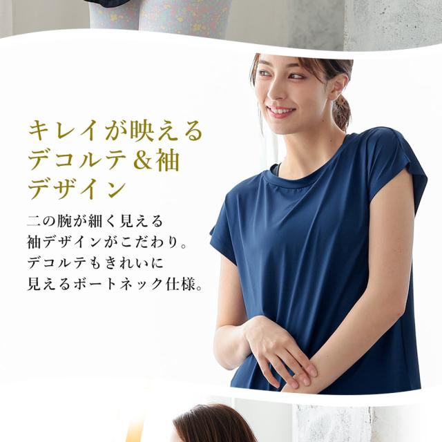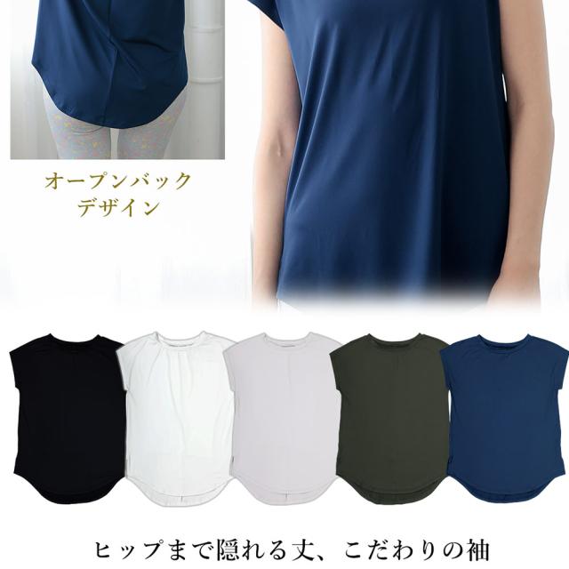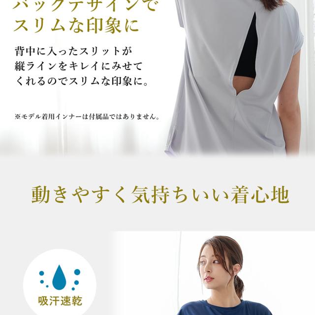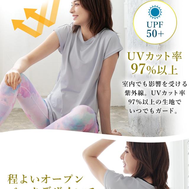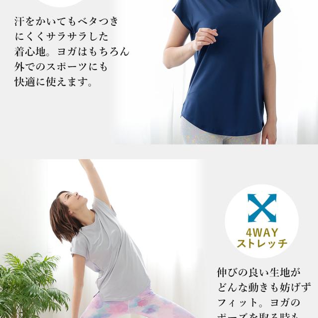ヨガ フィットネス ピラティスなどのスポーツ・トレーニングに使える半袖ロングTシャツ。