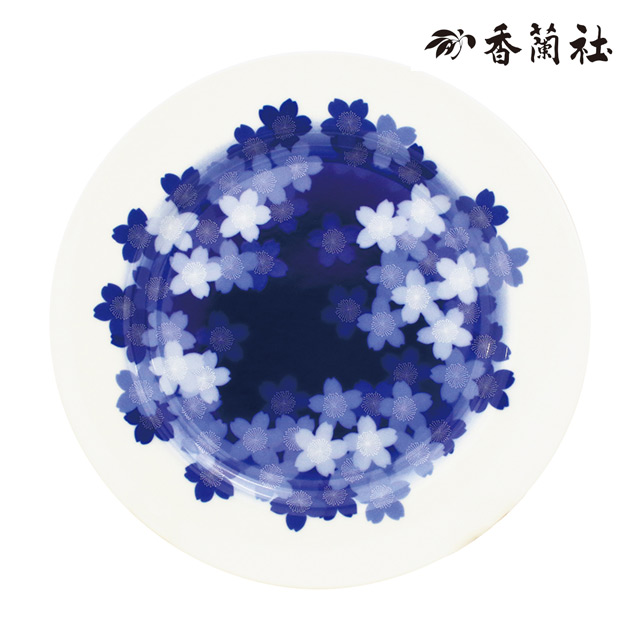 ・絨毯のように重なる桜を鮮やかなコバルトブルーと白磁のコントラストで表現。