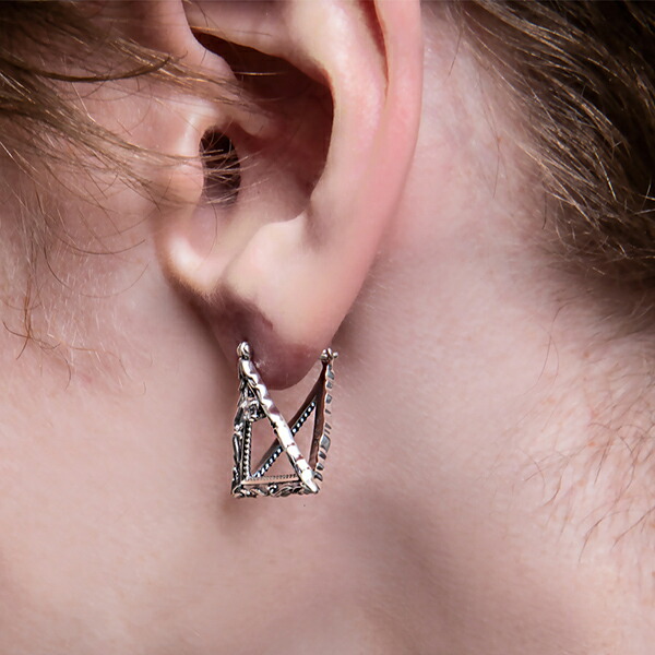 スケルトンな三角立方体デザインは、お洒落で個性的なフォルムです。