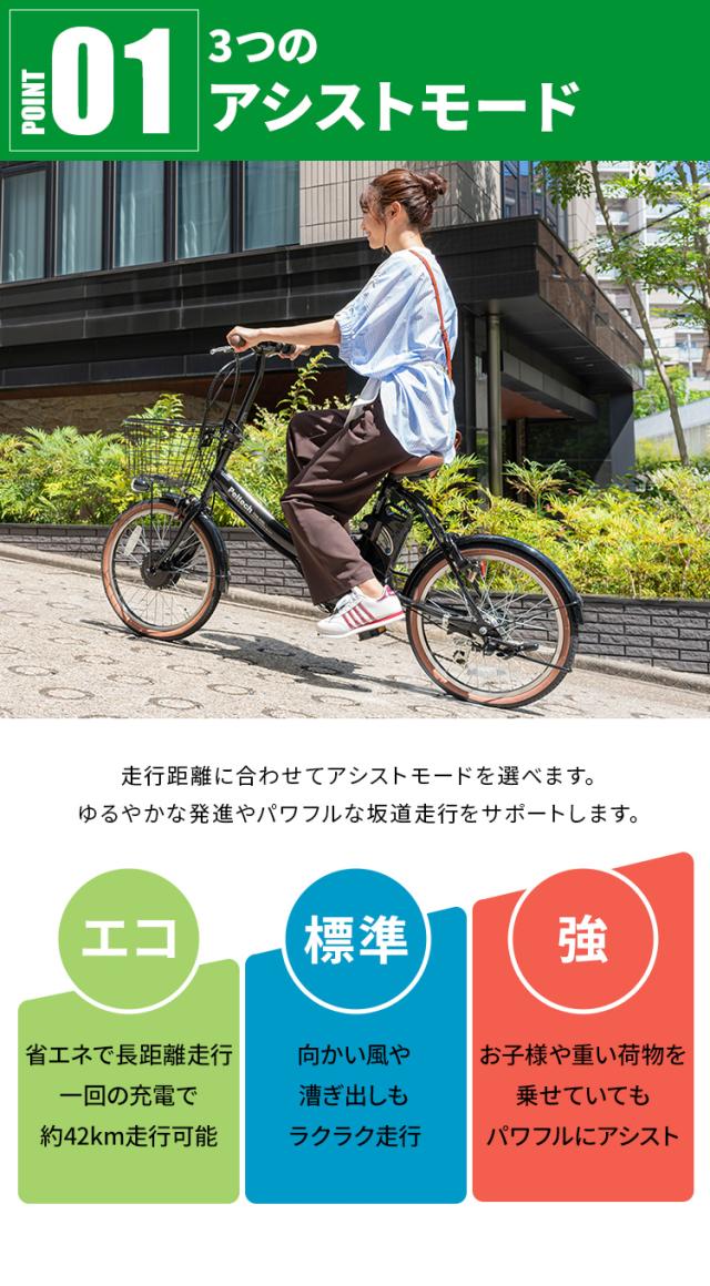 お買い物や通勤通学にも便利な前カゴ、駐輪時の施錠が容易な後輪錠、フロントLEDライト、シマノ製外装6段変速を装備。電動アシスト3モードの20インチ電動自転車です!!