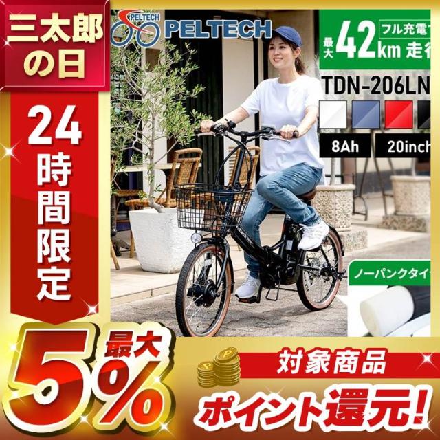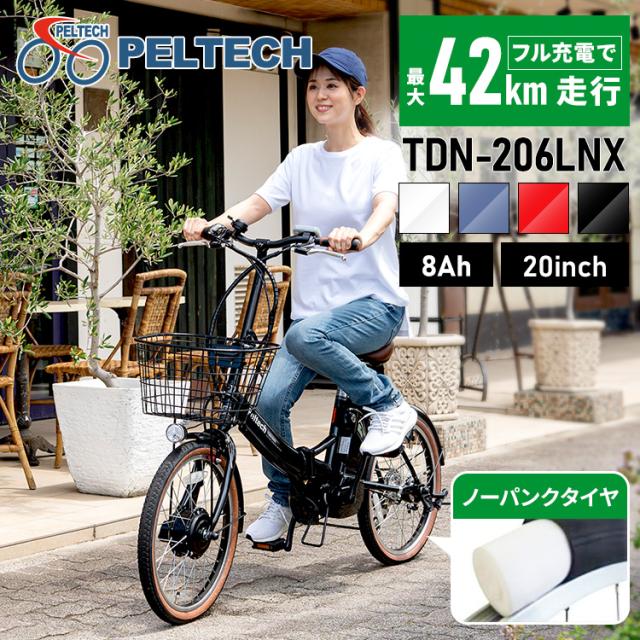 PELTECH ノーパンク 20インチ 折り畳み 電動アシスト自転車 外装6段変速 【簡易組立必要品】 TDN−206LN−R [代引不可] 全4色 電動自転車 自転車 E−BIKE 折り畳み自転車 折りたたみ パンクしない ラクラク 坂道 電動 ペルテック 送料無料