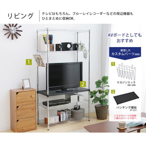 アイリスオーヤマの別売パーツと組み合わせて、オリジナルのシステムラックを作れます。