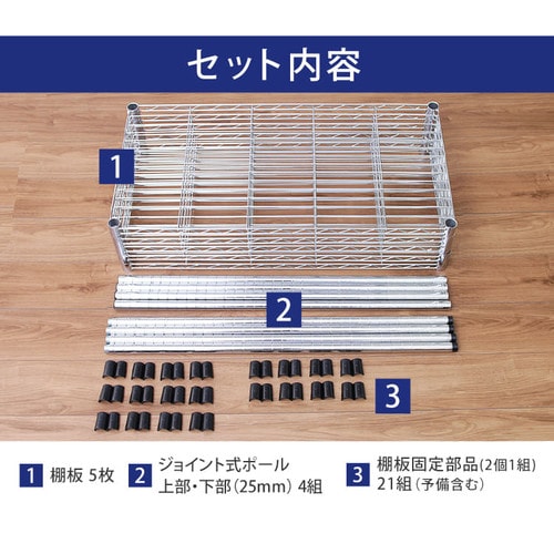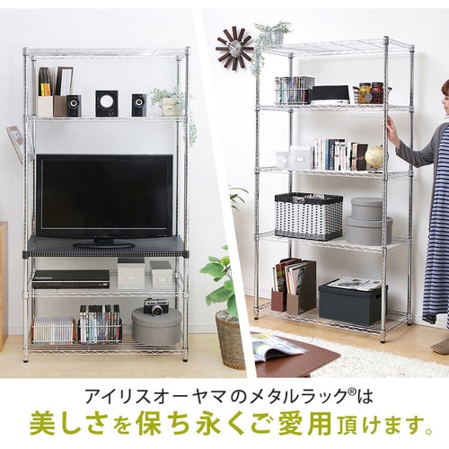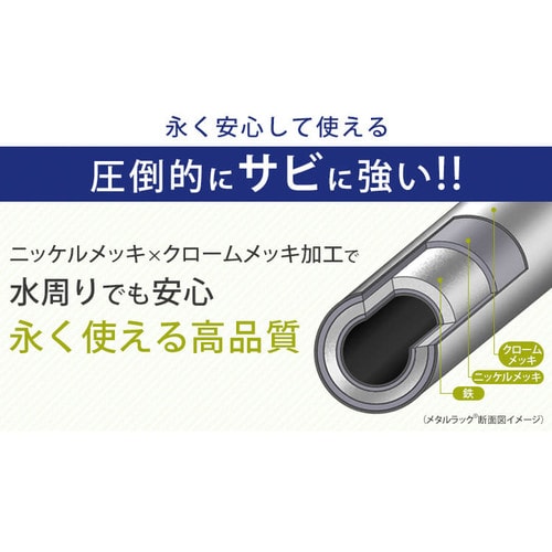 ポール直径25mmで軽量タイプ、クロームメッキ仕上げのメタルシェルフです。