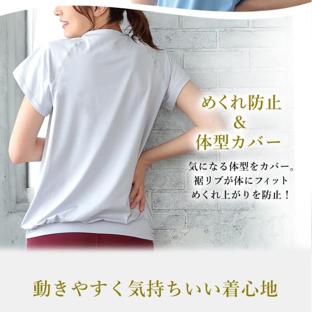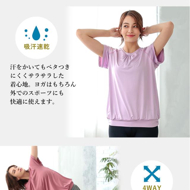 ヨガ フィットネス ピラティスなどのスポーツ・トレーニングに使える半袖Tシャツ。