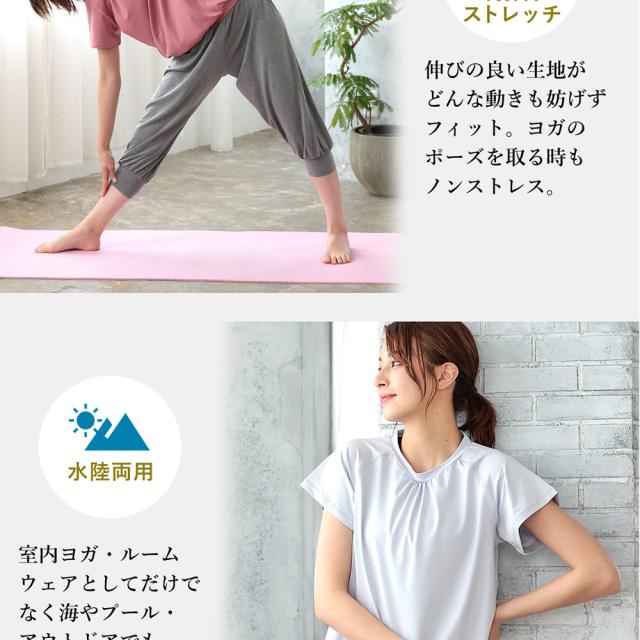 Koa ヨガウェア Tシャツ レディース ジムウェア ルームウェア UVカット UPF50+ 体型カバー ストレッチ 水陸両用 吸汗速乾