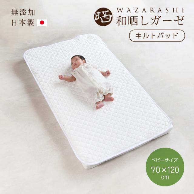 キルトパッド ベビーサイズ 70×120cm 和晒し 敷きパッド 日本製 脱脂綿入り 綿100% ガーゼ 洗える 洗濯可 赤ちゃん