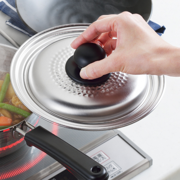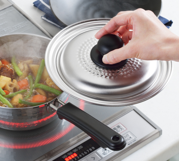 ●フタをすることで熱の回りが早くなるので、お湯などが早く沸き調理の効率がアップします。